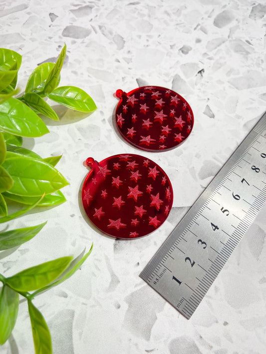 6 Christmas bauble red mirror acrylic earrings, festive bauble ornament earrings with etched stars